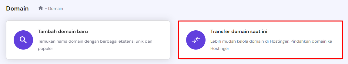 Berikut langkah-langkah untuk membeli layanan transfer domain di Hostinger: