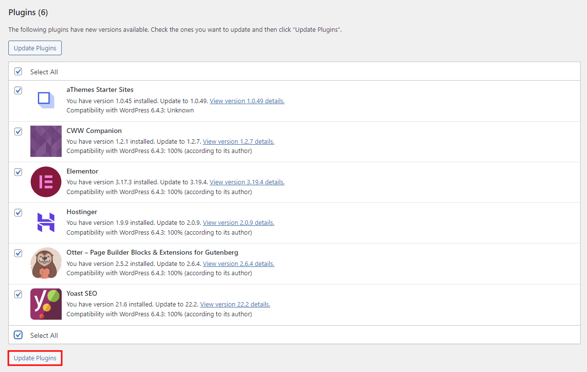 Langkah penting berikutnya sebelum memperbarui versi PHP WordPress adalah mengecek apakah ada pembaruan untuk plugin, tema, dan software core WordPress. Dengan memastikan hal ini, Anda bisa meminimalkan masalah kompatibilitas saat memperbarui versi PHP.