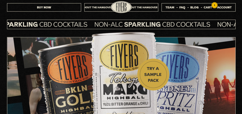 Flyers adalah produsen minuman kaleng dengan desain web yang bisa dijadikan sebagai contoh website e-Commerce. Mereka langsung menunjukkan 3 produk utamanya di homepage. Flyers bahkan pernah menjadi nominasi Awwwards berkat landing page yang unik dengan berbagai animasi.