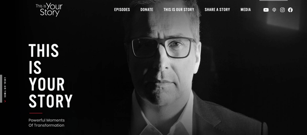 Di homepage websitenya, terdapat bagian yang menampilkan TED Talk sang pembawa acara sebagai bukti dedikasinya di bidang tersebut. Selain itu, website ini juga menggunakan bagian Testimonial untuk menampilkan ulasan dari tokoh bisnis terkemuka, yang turut meningkatkan kredibilitas dan personal branding sang podcaster.