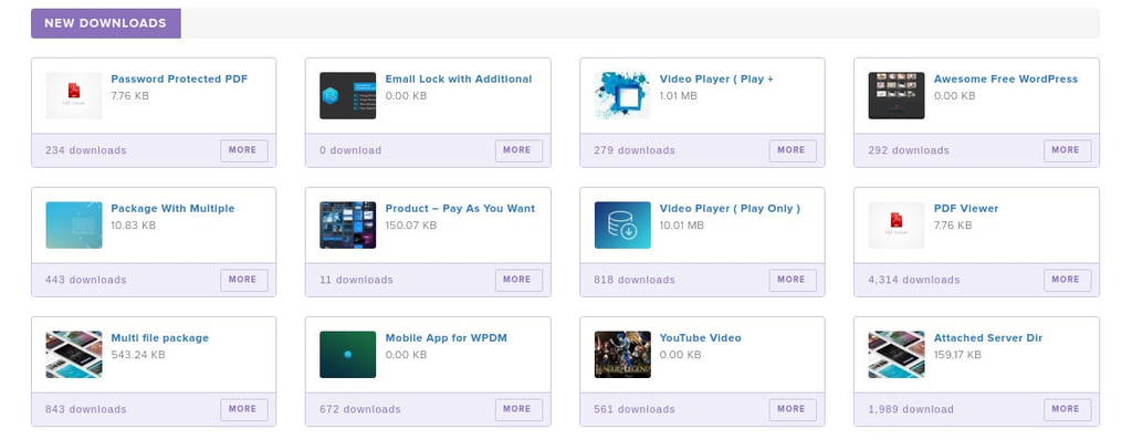 Menurut kami, plugin download manager WordPress yang satu ini memiliki antarmuka yang paling menarik. Fitur penting seperti mesin pencari bawaan, pembatasan akses dan unduhan, dan statistik juga disertakan.