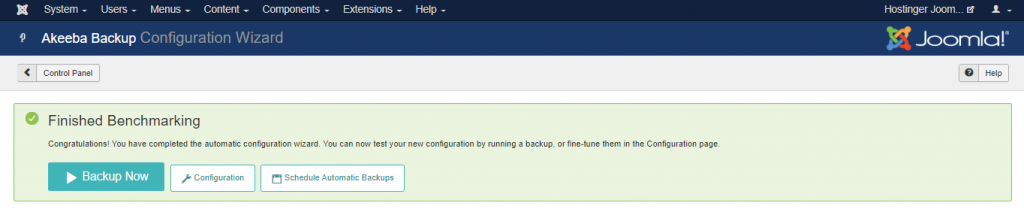 - Klik Configuration -> Configuration Wizard untuk mengaktifkan benchmarking wizard yang akan mengoptimalkan performa backup untuk situs Anda.