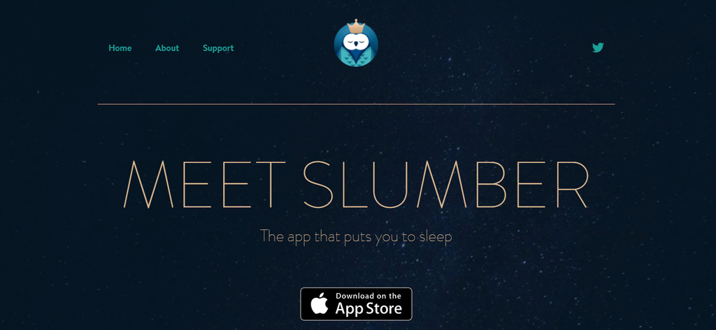 Website galeri audio Slumber menggunakan kombinasi warna biru klasik, biru kehijauan, dan emas yang elegan untuk menciptakan nuansa tenang dan mewah.