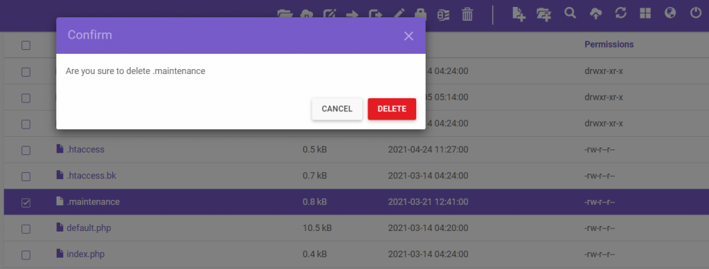 File ini biasanya dihapus otomatis ketika update selesai sehingga pesan maintenance juga akan hilang. Tapi ada kalanya WordPress terjebak dalam mode maintenance sehingga pesan tetap muncul, bahkan setelah update selesai.