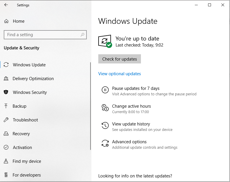 2. Pilih Windows Update. Sistem akan memberi tahu Anda apakah ada update. Anda juga bisa mengecek update secara manual dengan mengklik tombol Check for updates.
