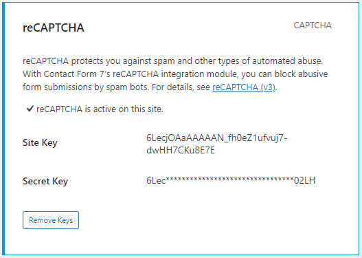 Plugin Contact Form 7 memiliki opsi untuk mengintegrasikan reCAPTCHA pada semua formulirnya.
