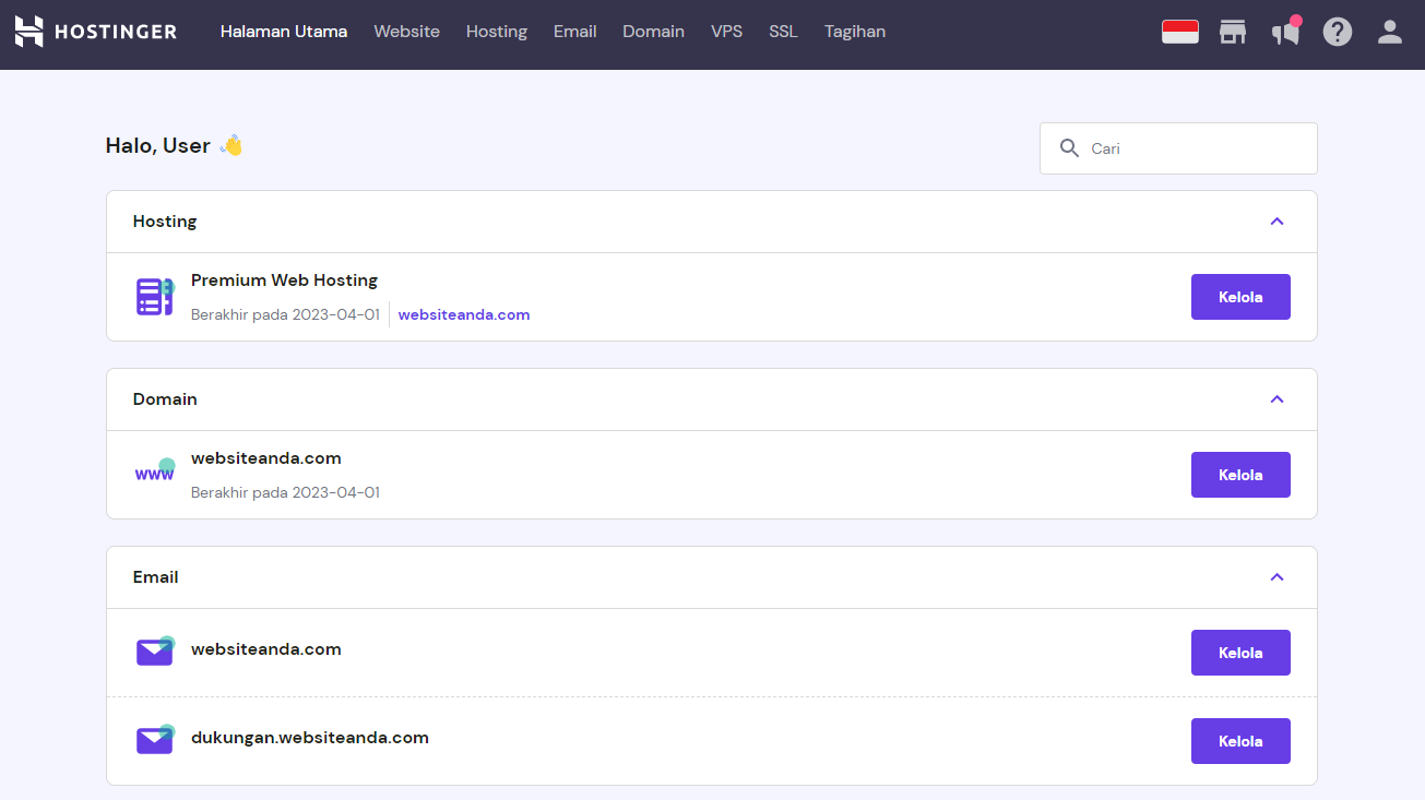 • Antarmuka yang user-friendly. Control panel yang intuitif dan mudah dijelajahi memungkinkan Anda mengelola website dengan mudah.