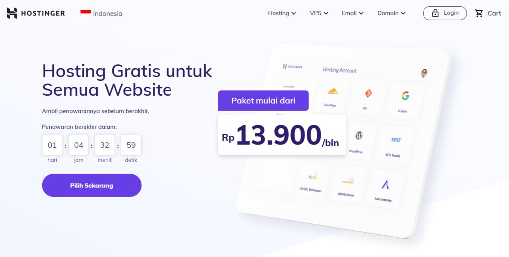 Contoh lainnya adalah website kami sendiri, yaitu hostinger.com. Kalau Anda membuka www.hostinger.com dan hostinger.com, keduanya akan mengarah ke halaman landing yang sama, walaupun di sini ada subdomain www.