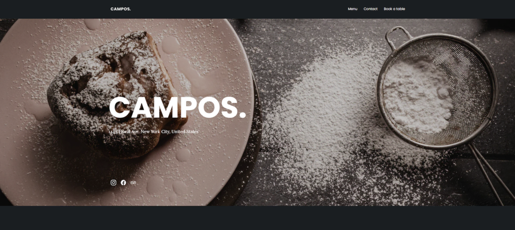 Header homepage template ini menampilkan gambar latar belakang sticky yang bisa memaksimalkan visual brand Anda. Ada banyak ruang kosong yang tersedia agar tampilan terkesan lega, mengarahkan perhatian pengunjung ke visual dan tombol CTA yang diletakkan secara strategis.