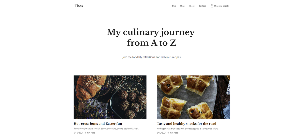 Kemudian, ada halaman Blog dengan tampilan rapi yang senada dengan nuansa keseluruhannya untuk menyajikan konten tulisan Anda dengan jelas. Tersedia beberapa opsi tata letak kalau kolom defaultnya kurang sesuai dengan preferensi Anda.