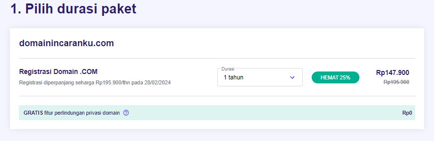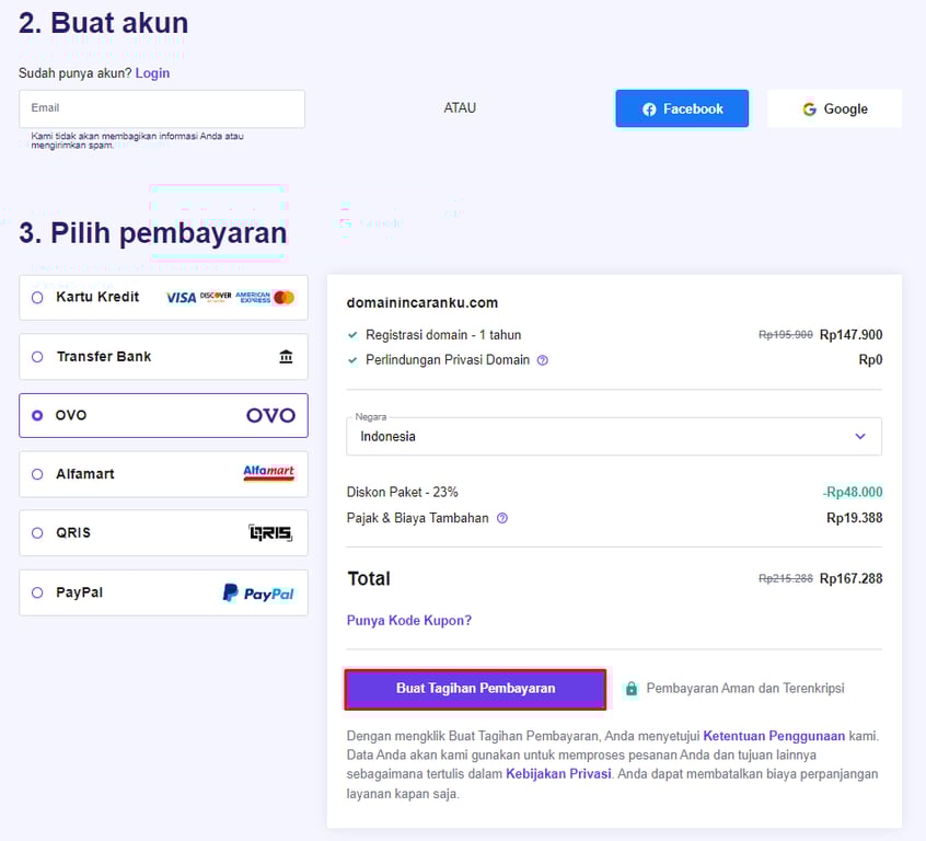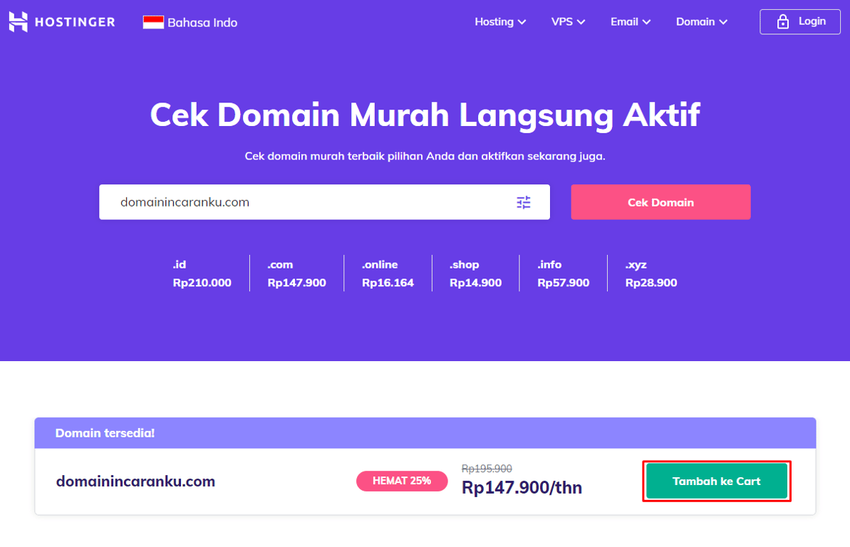 Ikuti langkah-langkah di bawah ini yang menjelaskan cara beli domain: