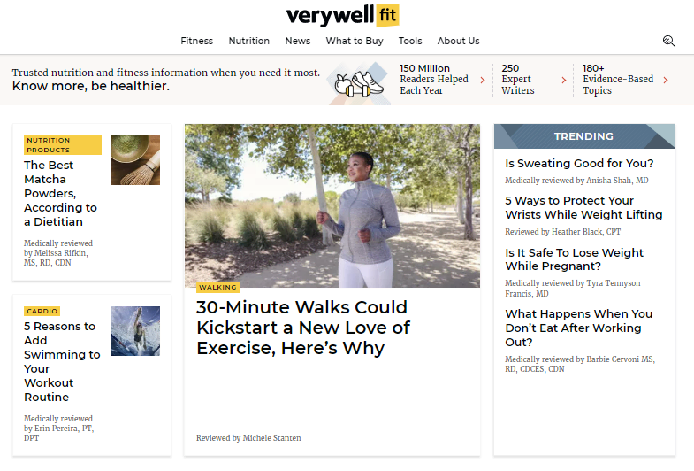 Verywell Fit is one of the best affiliate marketing websites in the health industry. Its mission is to help people reach their fitness and nutrition goals.
