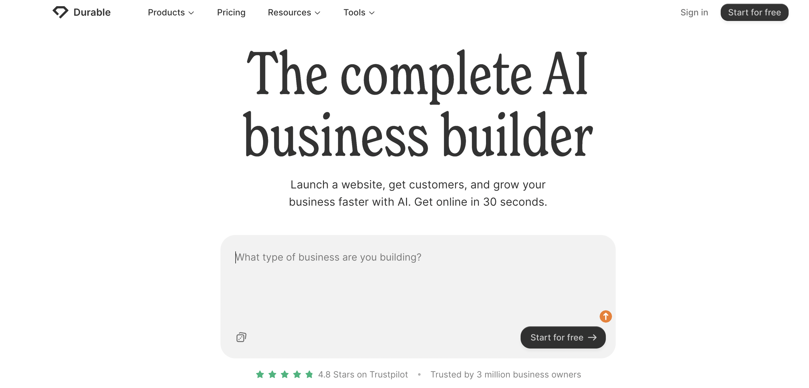 - Durable – fastest AI website builder for instant website creation
