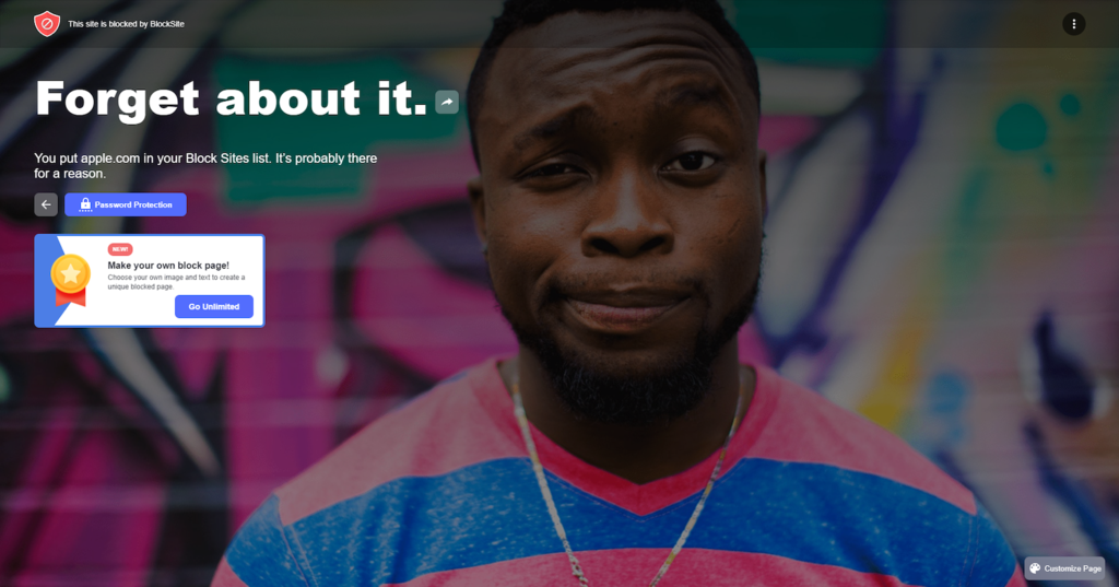 Open your browser or app to see the result. BlockSite should show a block page when you try accessing the website or application.