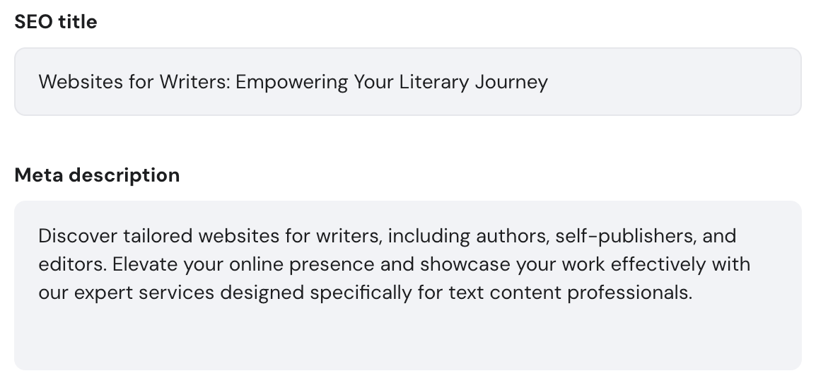 Hostinger Website Builder’s built-in SEO tools help optimize your website for search engines. Go to Website settings → SEO settings and add the page description. Next, Hostinger Website Builder will suggest three focus keywords. Choose the ones that match your business best.
