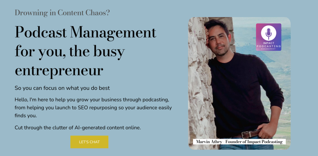 This website provides an all-encompassing service aimed at helping busy entrepreneurs with podcast management.