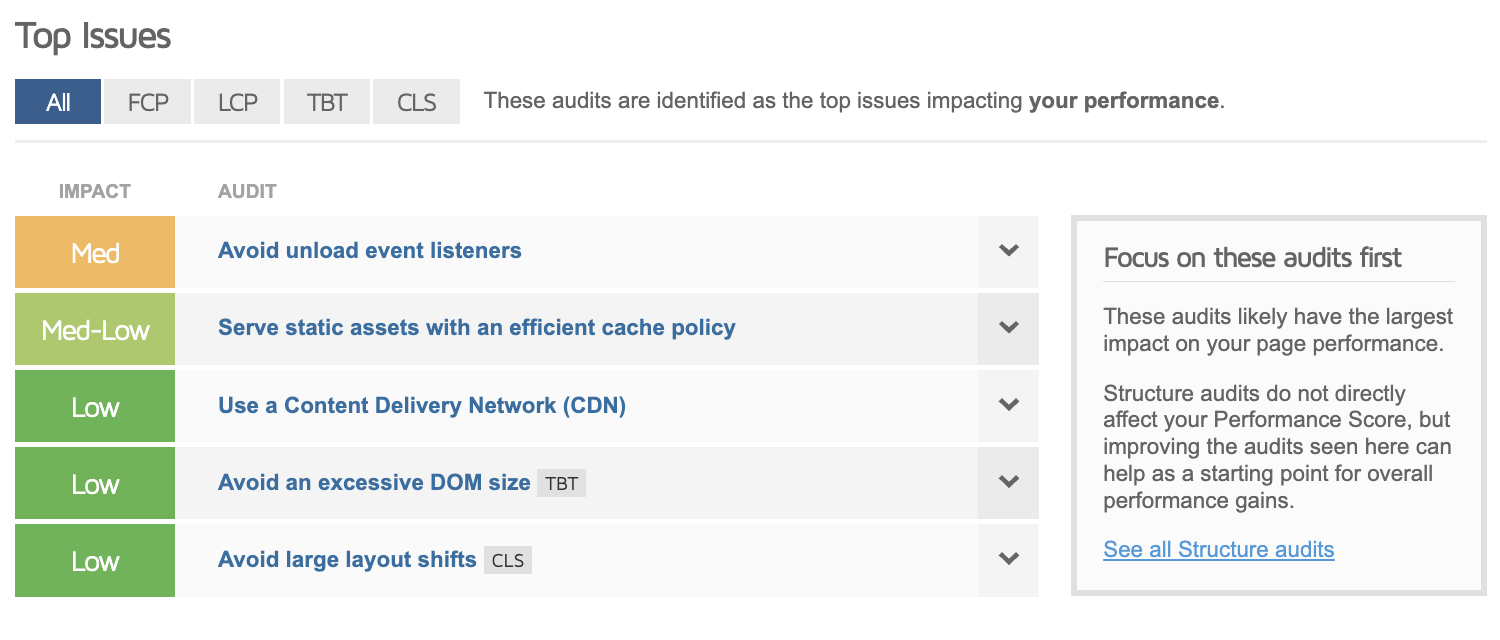 One of the most popular tools for measuring site performance is Google’s PageSpeed Insights. Using real-user experience data, the software provides Core Web Vitals reports, including Interaction to Next Paint (INP) and Time to First Byte.