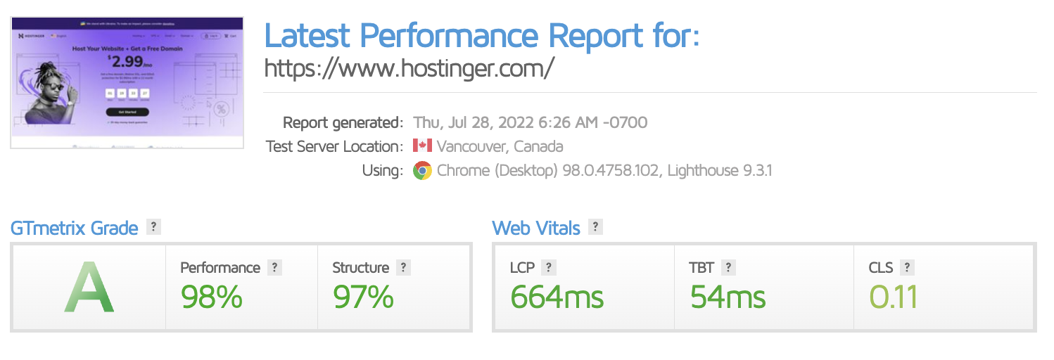 With a Hostinger plan, you can also access PageSpeed Insights from the hPanel: