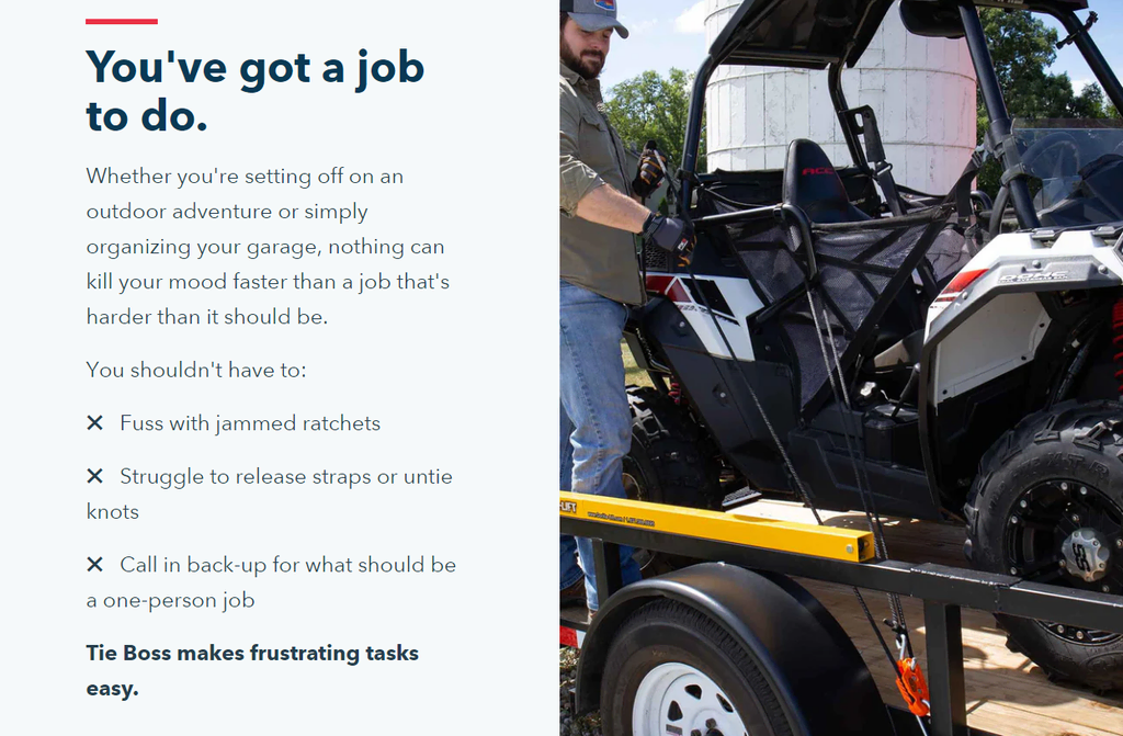 Tie Boss is one of the StoryBrand website examples that do an impressive job of identifying and highlighting the problems its clients have. While naming all the problems a product can solve is a key step in its creation, many businesses don’t include it in their marketing strategies.