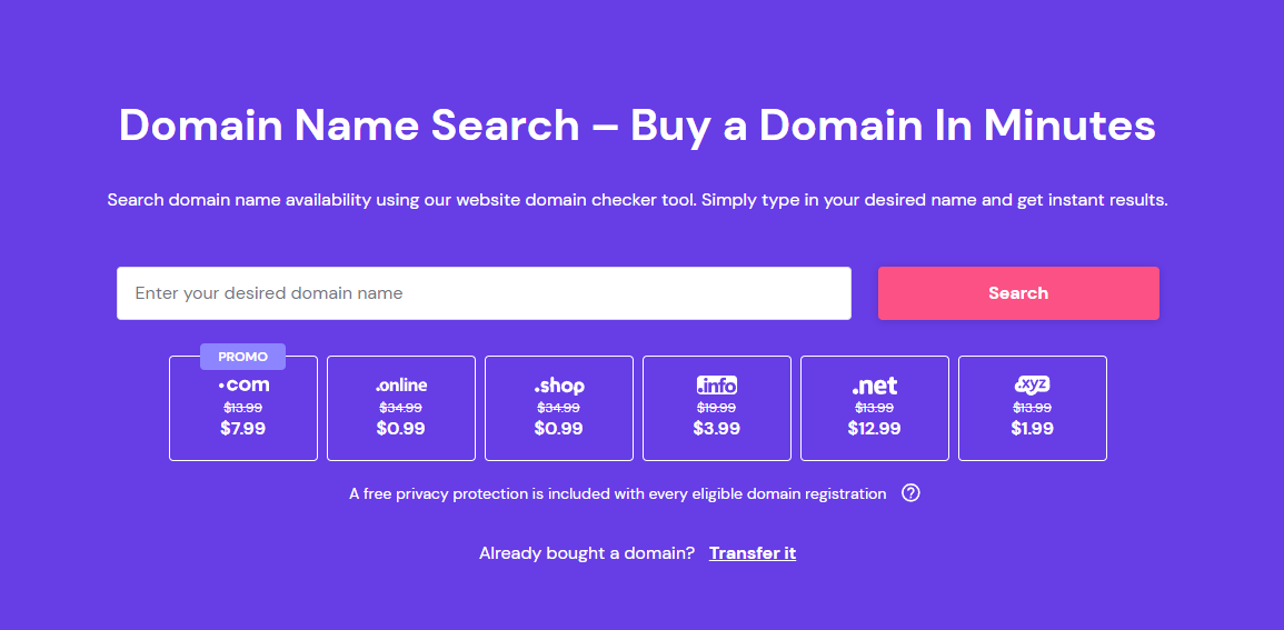 For added security, budget for domain privacy protection. This feature protects your personal information from being publicly listed in the WHOIS database. This service can cost $2–$20 per year, although some providers, like Hostinger, offer it for free with a domain name.
