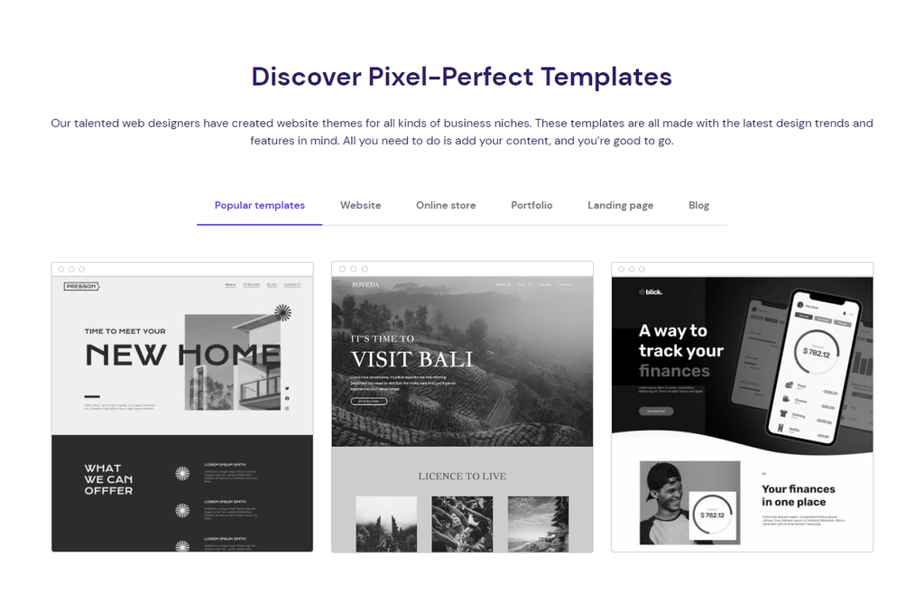 - Ecommerce platform: Many website builders offer ecommerce plans with all the essential features you need to start selling. For example, Hostinger’s ecommerce website builder lets you sell a wide range of products and accept over 100 payment methods.