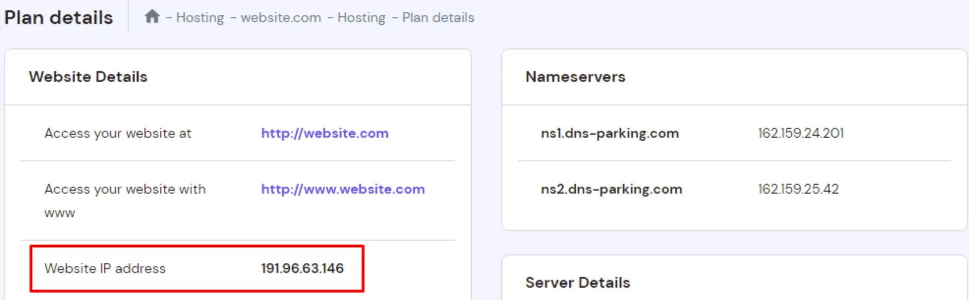 - Compila il campo Punta a con l’indirizzo IP del proprio account di hosting. L’indirizzo IP è visibile nella sezione Hosting → Dettagli.