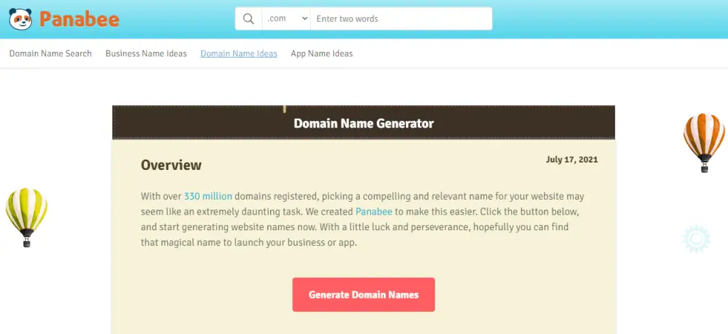 Questo strumento per generare nomi di domini non ha funzionalità avanzate rispetto ad altri in questa lista. Tuttavia, la sua semplicità lo rende uno dei migliori generatori di nomi di dominio per una ricerca rapida.