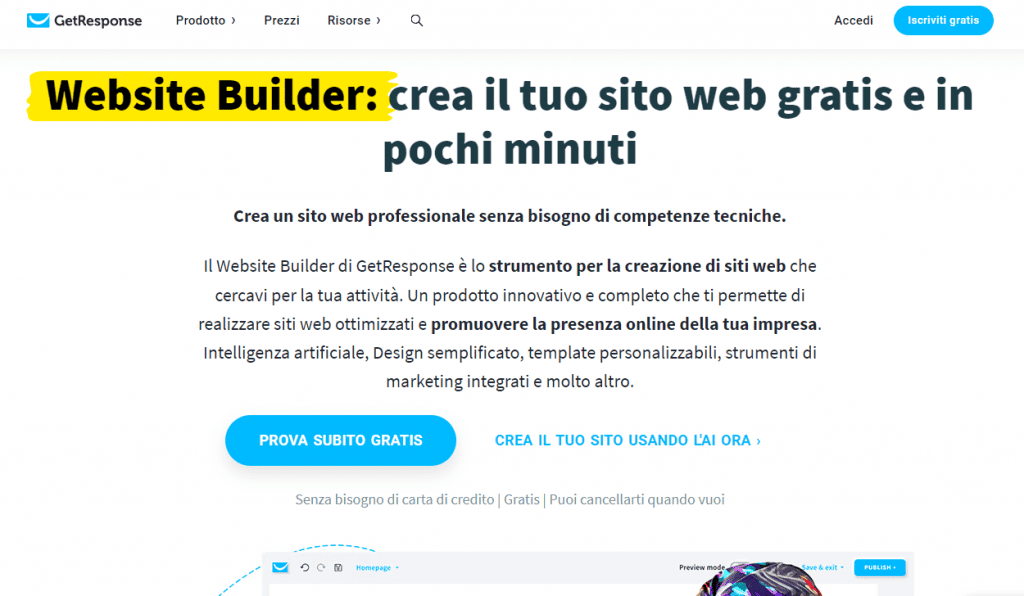 Se hai bisogno di creare landing page a supporto delle tue campagne di email marketing, l’AI builder di GetResponse potrebbe fare al caso tuo: i piani premium partono da 15,58€ al mese.