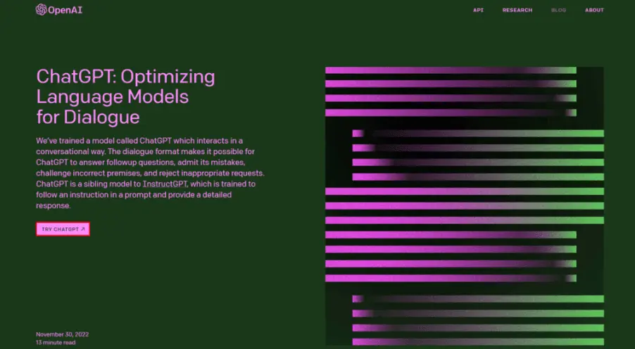 Visita la pagina di ChatGPT e clicca su Prova ChatGPT per iscriverti o creare un nuovo account. È inoltre possibile ottenere alcune informazioni su questo strumento, tra cui il metodo di formazione, le limitazioni e gli esempi di utilizzo.