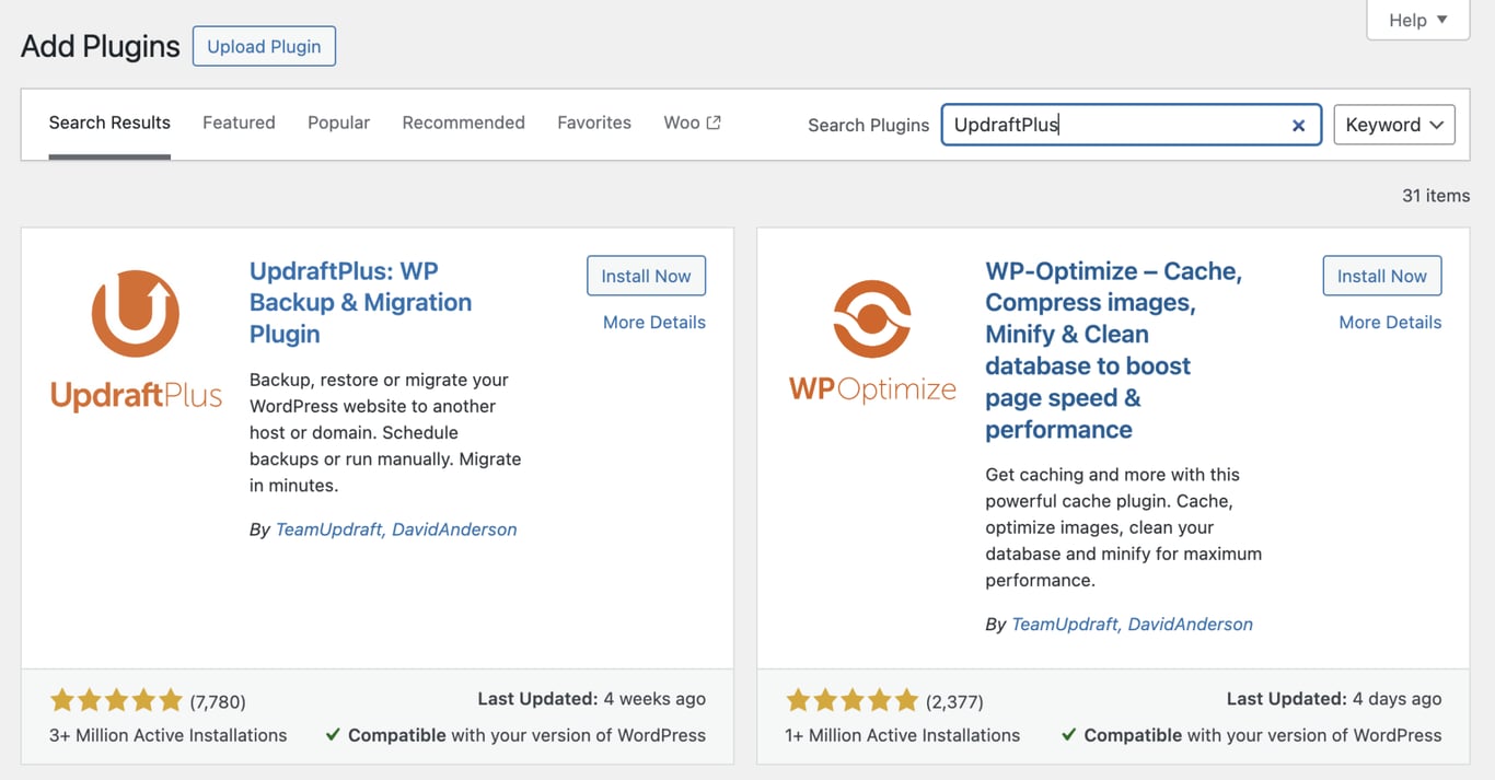 プラグインを使えば、WordPressダッシュボードから直接Webサイトファイルとデータベースをバックアップできるので便利。