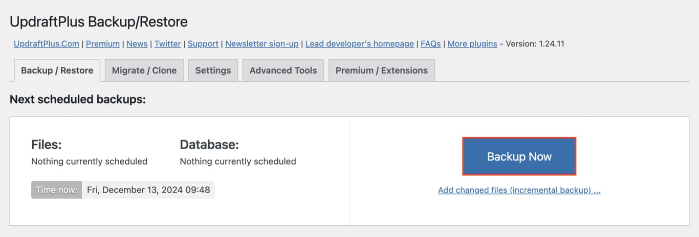 UpdraftPlusでWordPressのバックアップを作成する手順:
