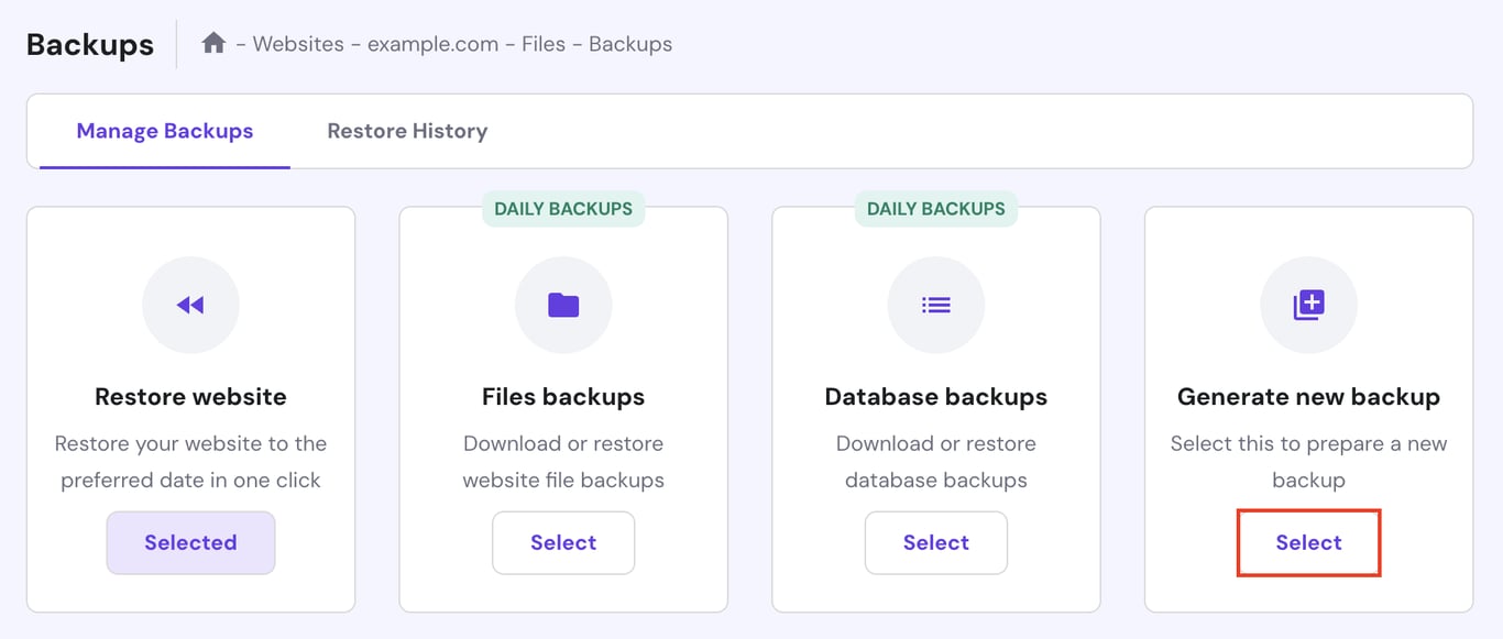 Hostingerで新しいバックアップを手動で作成したい場合は、以下のステップに従ってください。