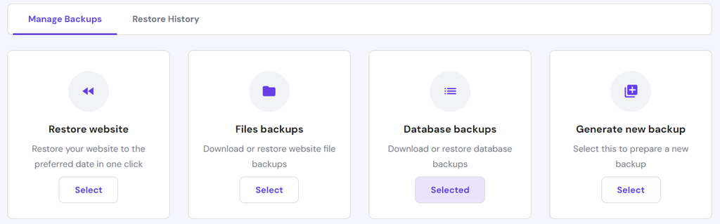 Hostingerユーザーなら、hPanelから数クリックでバックアップを復元できます。Webサイト管理エリアで、サイドバー → ファイル → バックアップの順に移動し、Webサイトの復元を選択します。