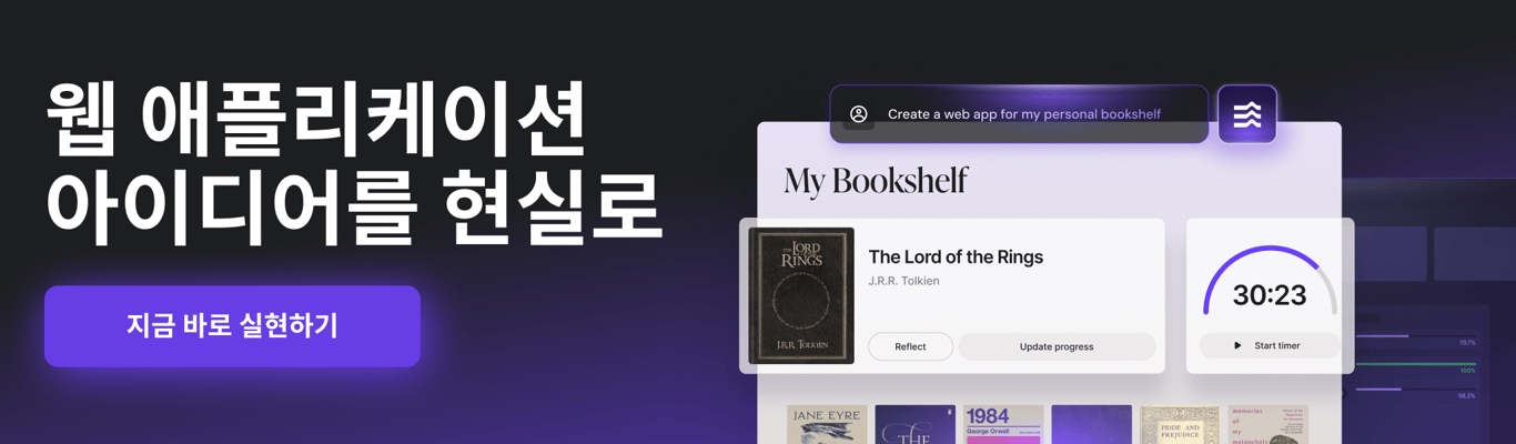 코딩 없이도 맞춤형 웹 앱을 만들 수 있습니다. 간단한 앱(예: 시간 추적기 또는 예산 도구)을 만들고 싶다면 몇 분 안에 앱을 만들어 배포할 수 있습니다. 사용자 인증, 데이터베이스 통합, 결제 처리 등의 고급 웹 앱도 지원되지만 추가 설정이 필요할 수 있습니다.