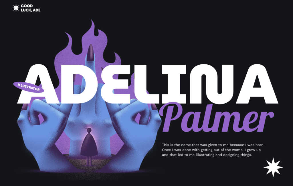 Ahora, veamos algunos ejemplos de portafolios de diseño gráfico creados con el Creador de páginas web de Hostinger.