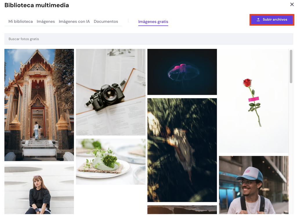 A continuación, puedes subir la imagen que quieras destacar a través de la biblioteca multimedia.
