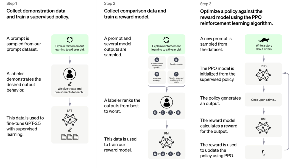 What makes OpenAI different is that it trains ChatGPT using the Reinforcement Learning from Human Feedback (RLHF) method. It involves human feedback to measure and rank the responses based on their quality.