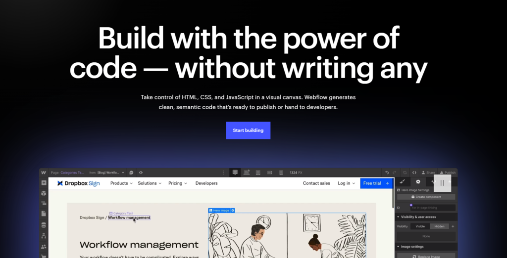 Users can also use Webflow’s built-in CMS for dynamic content management. Once your site is ready, you can publish it using Webflow’s hosting or export the code to use third-party web hosting plan.