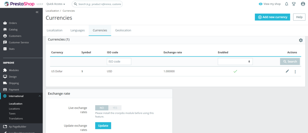 Follow the steps below to apply multi-currency in your PrestaShop online store: