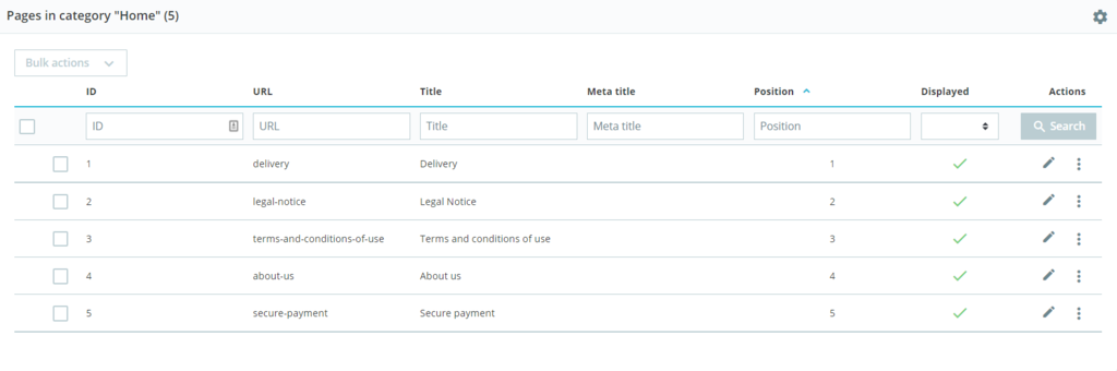 PrestaShop automatically creates several basic pages like About us, Store Information, and Terms and conditions of use. However, like other online shops, you’ll also need pages such as blog, FAQ, or Seller Registration.