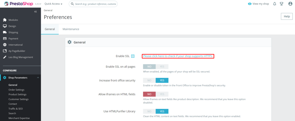 Follow the steps below to enable SSL on PrestaShop:
