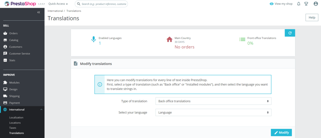 - From your admin panel, navigate to International → Translations.