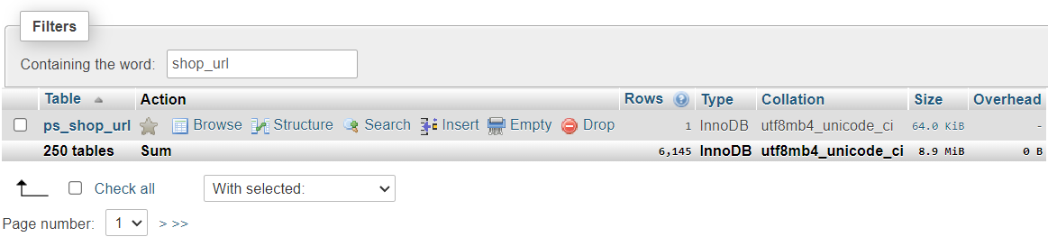 - Type in shop_url on the Filters search bar. Once you find (prefix)_shop_url, click to open it.