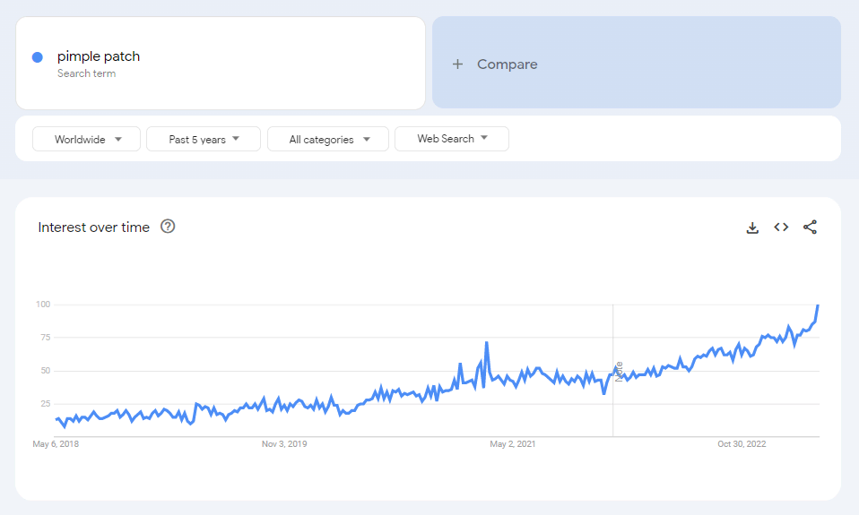 - Monthly global Google search volume: 107,000 (“pimple patch”)