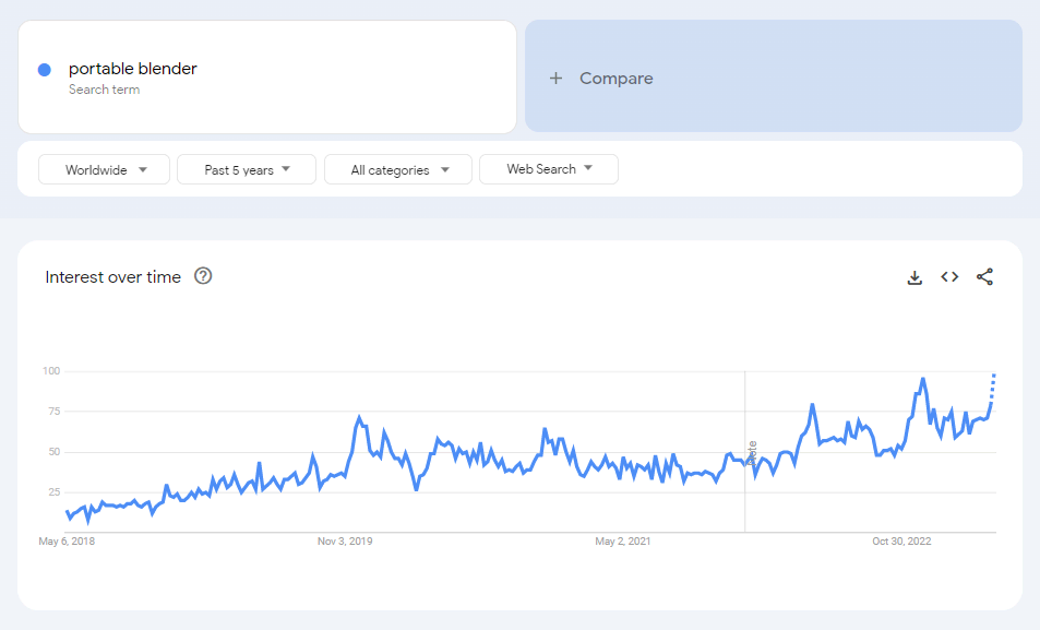 The search volume for “water bottle” on Google Trends has been increasing steadily. It reached its highest point in December 2022 and will remain high in 2023.