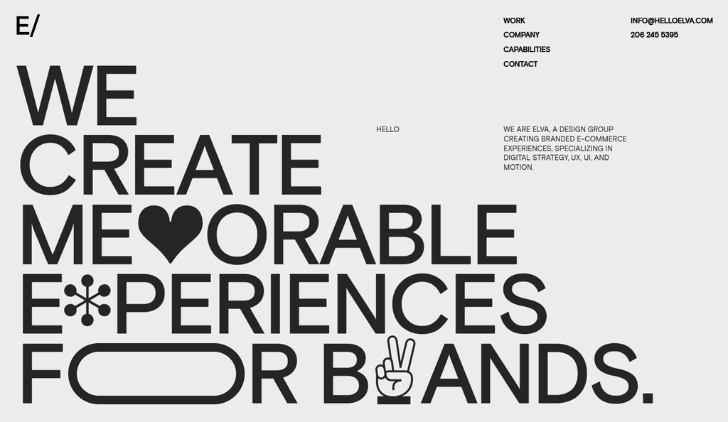 Elva’s homepage design uses kinetic typography for its hero. This design element combines animation with typography, adding an artistic flair and bringing the text to life.