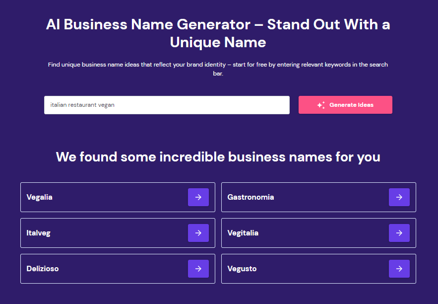 For those starting a new business, use our AI Business Name Generator and Logo Maker to come up with the perfect brand identity.