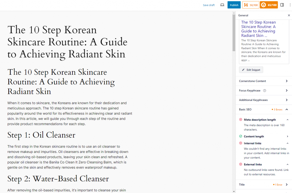 Deze plug-in maakt gebruik van een stoplichtsysteem, waarbij kleurgecodeerde indicatoren (groen, oranje en rood) direct feedback geven over je inhoud. Dit helpt je bij het optimaliseren van on-page-elementen, zoals de dichtheid van de juiste zoekwoorden en de lengte van meta tags.