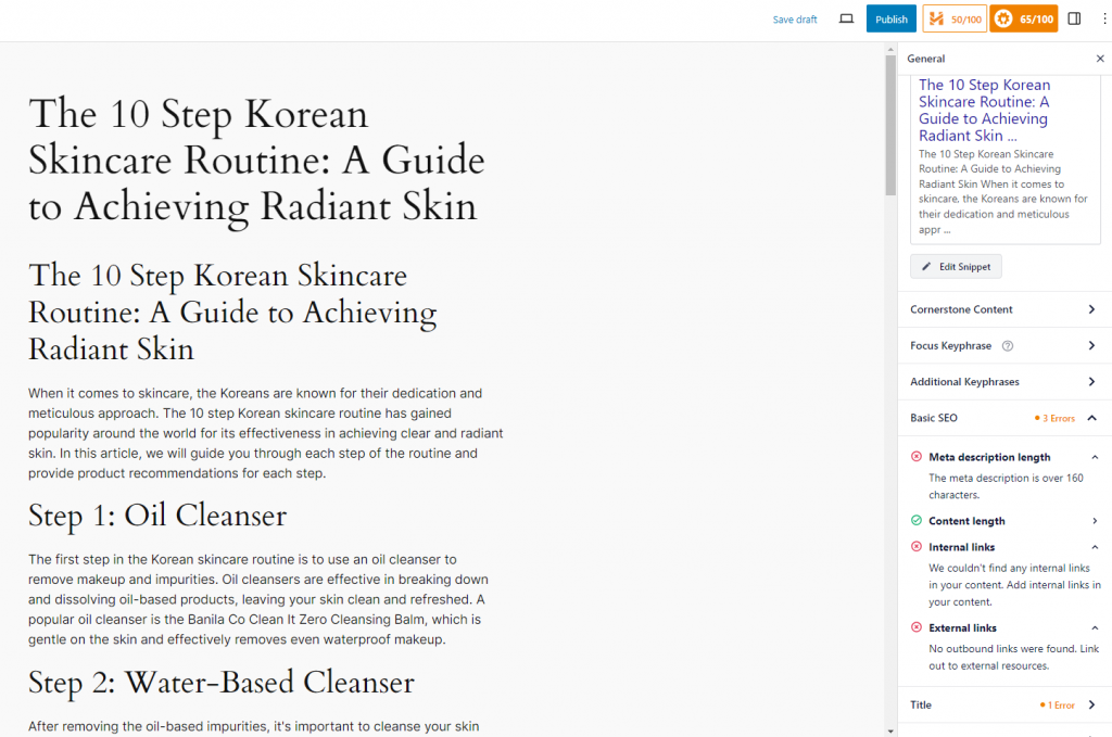 Deze plug-in maakt gebruik van een stoplichtsysteem, waarbij kleurgecodeerde indicatoren (groen, oranje en rood) direct feedback geven over je inhoud. Dit helpt je bij het optimaliseren van on-page-elementen, zoals de dichtheid van de juiste zoekwoorden en de lengte van meta tags.