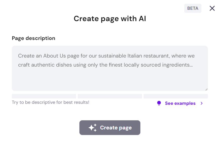 - Beschrijf in het veld de pagina die je wilt maken en klik vervolgens op Pagina maken.